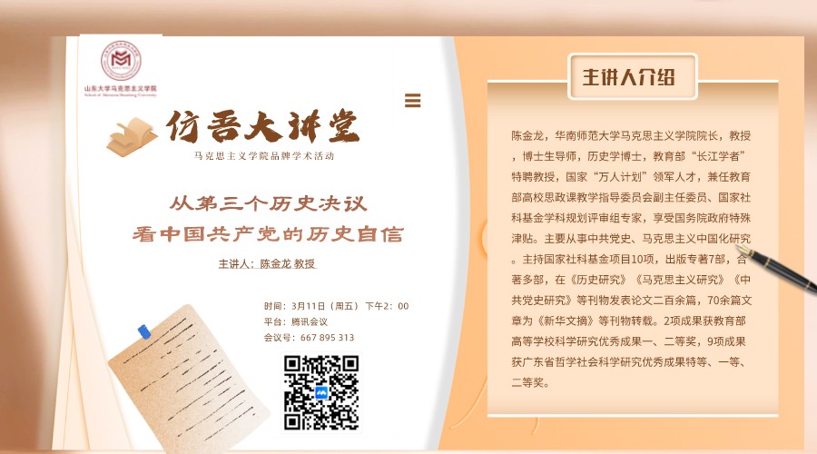 学术预告:陈金龙教授谈从第三个历史决议看中国共产党的历史自信
