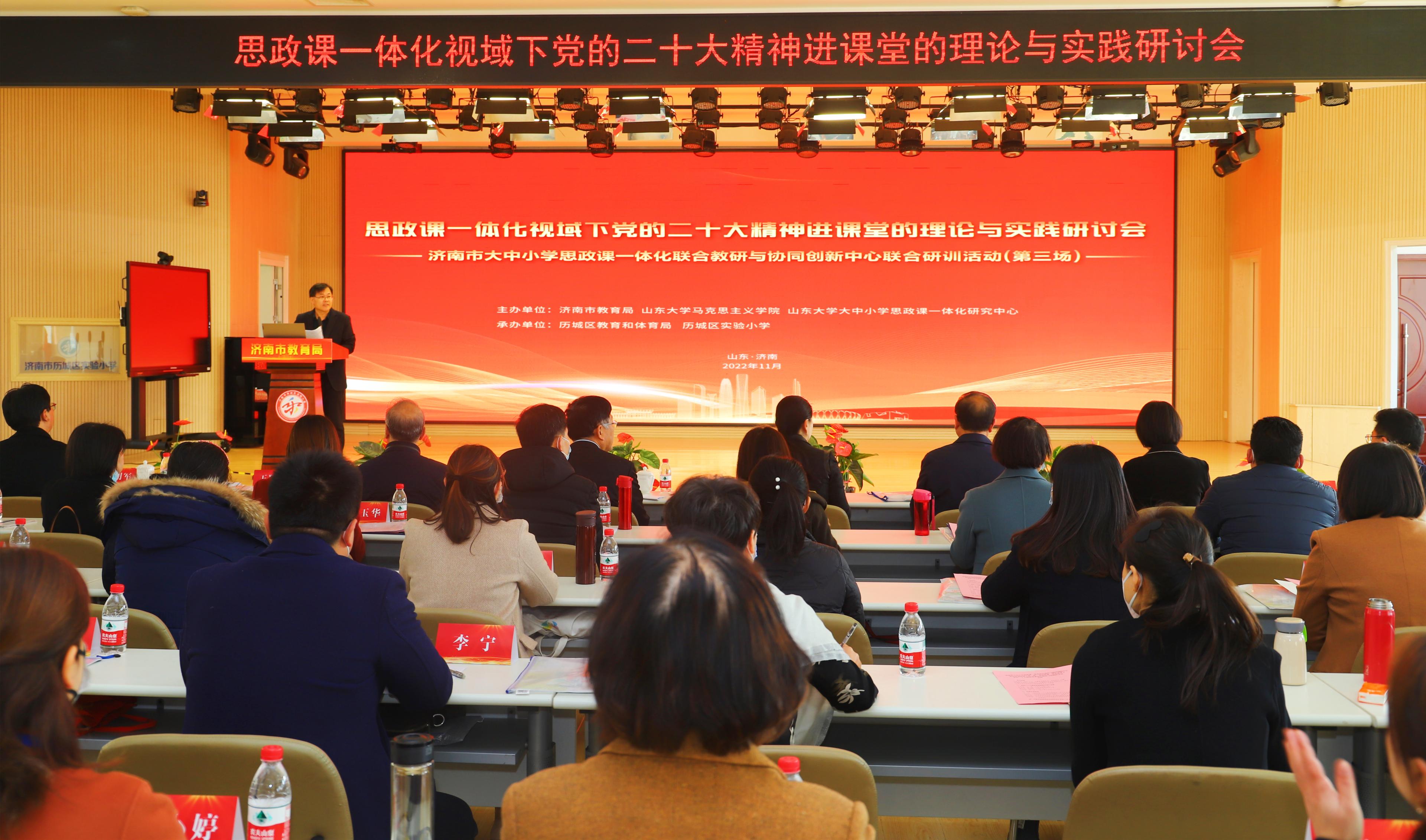 为深入学习宣传贯彻党的二十大精神,引领思政课教师深刻领悟党的二十大精神内涵实质,切实增强用党的二十大精神指引育人实践的思想自觉和行动自觉,全面推进党的二十大精神进课堂,11月13日上午,“思政课一体化视域下党的二十大精神进课堂的理论与实践”研讨会暨济南市大中小一体化联合研训活动在历城区实验小学举行。
