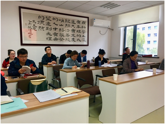 讲话完毕后,与会人员进行了第一次集体学习,由学院组织员齐子萍作为领学人,带领大家学习了上级党委关于加强和改进基层党建工作的相关文件,对其中的重点内容进行了详细解读。最后,全体人员通过观看视频学习了党的十九大党章修订的原因、现实意义、主要内容等,进一步加深了对党章的认识和理解。