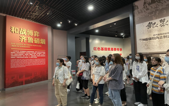 在讲解员的引导下,师生们怀着崇敬的心情一一观看了珍贵的照片、翔实的史料、丰富的实物,缅怀革命先烈,致敬红色岁月。在全景实景画馆,大家集体观看了强攻济南内城那场气势磅礴的激烈战斗,真切感受了济南战役的伟大和艰辛,深刻领悟了济南战役中党政军民上下同心的意志,战则必胜的坚定信念以及不怕牺牲奋勇争先的担当精神,在光与影之中、在图与景之间,接受了一堂生动形象的红色主题教育。