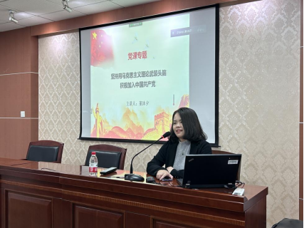 开班仪式结束后,院长助理董沐夕讲授本期培训班第一专题《坚持用马克思主义理论武装头脑,积极加入中国共产党》。