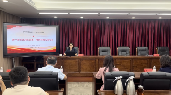 近日,青岛市崂山区商务局邀请我院青岛校区思政课教研室赵信彦博士讲授《深入学习贯彻党的二十届三中全会精神——进一步全面深化改革,推进中国式现代化》专题党课。崂山区商务局党政领导以及职工70余人参加了本次党课学习活动。