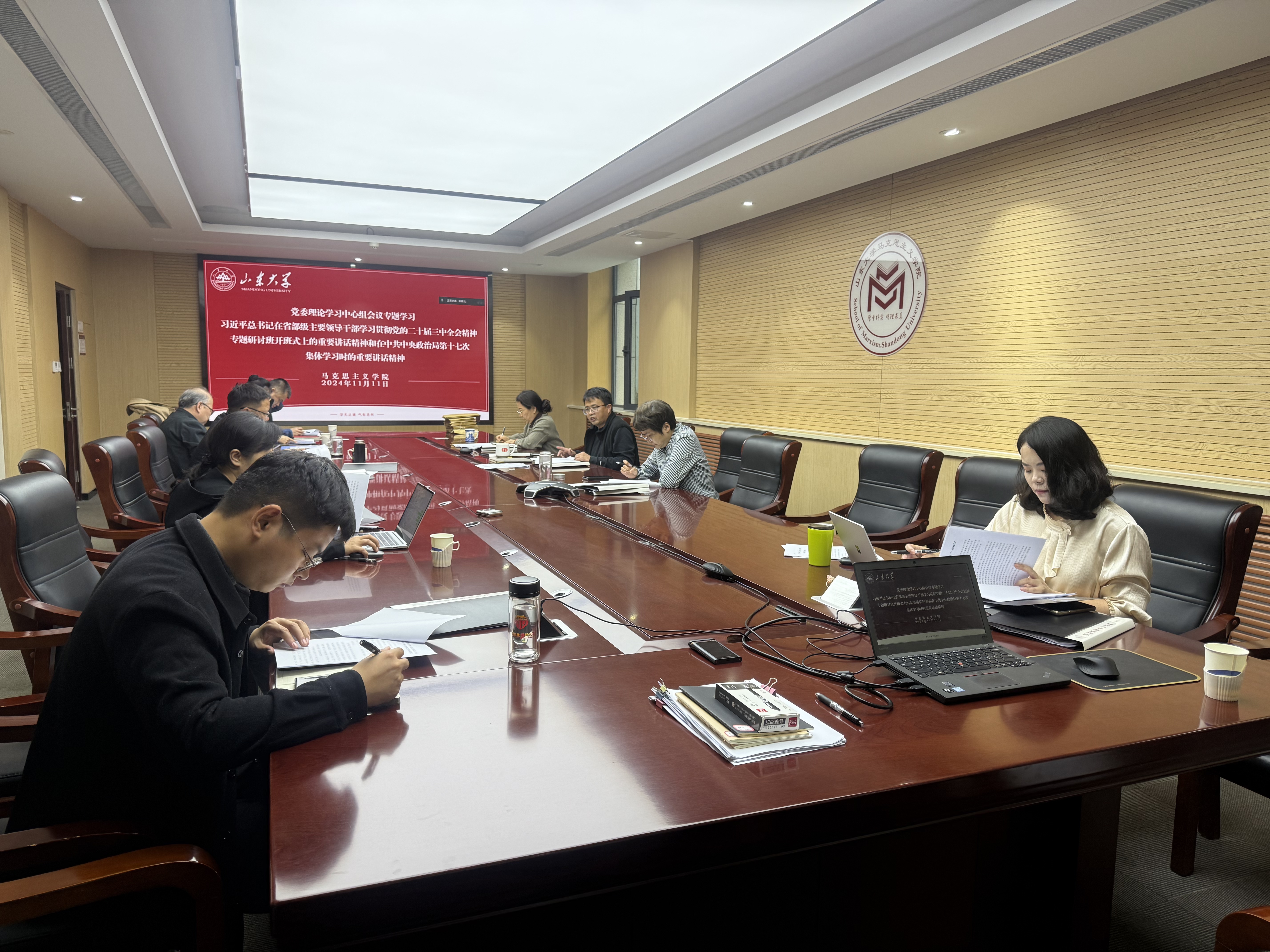 11月11日上午,WilliamHill威廉希尔召开党委理论学习中心组会议,专题学习习近平总书记在省部级主要领导干部学习贯彻党的二十届三中全会精神专题研讨班开班式上的重要讲话和在中共中央政治局第十七次集体学习时的重要讲话精神,学院党委理论学习中心组成员参加会议。学院党委书记鞠晗主持会议。