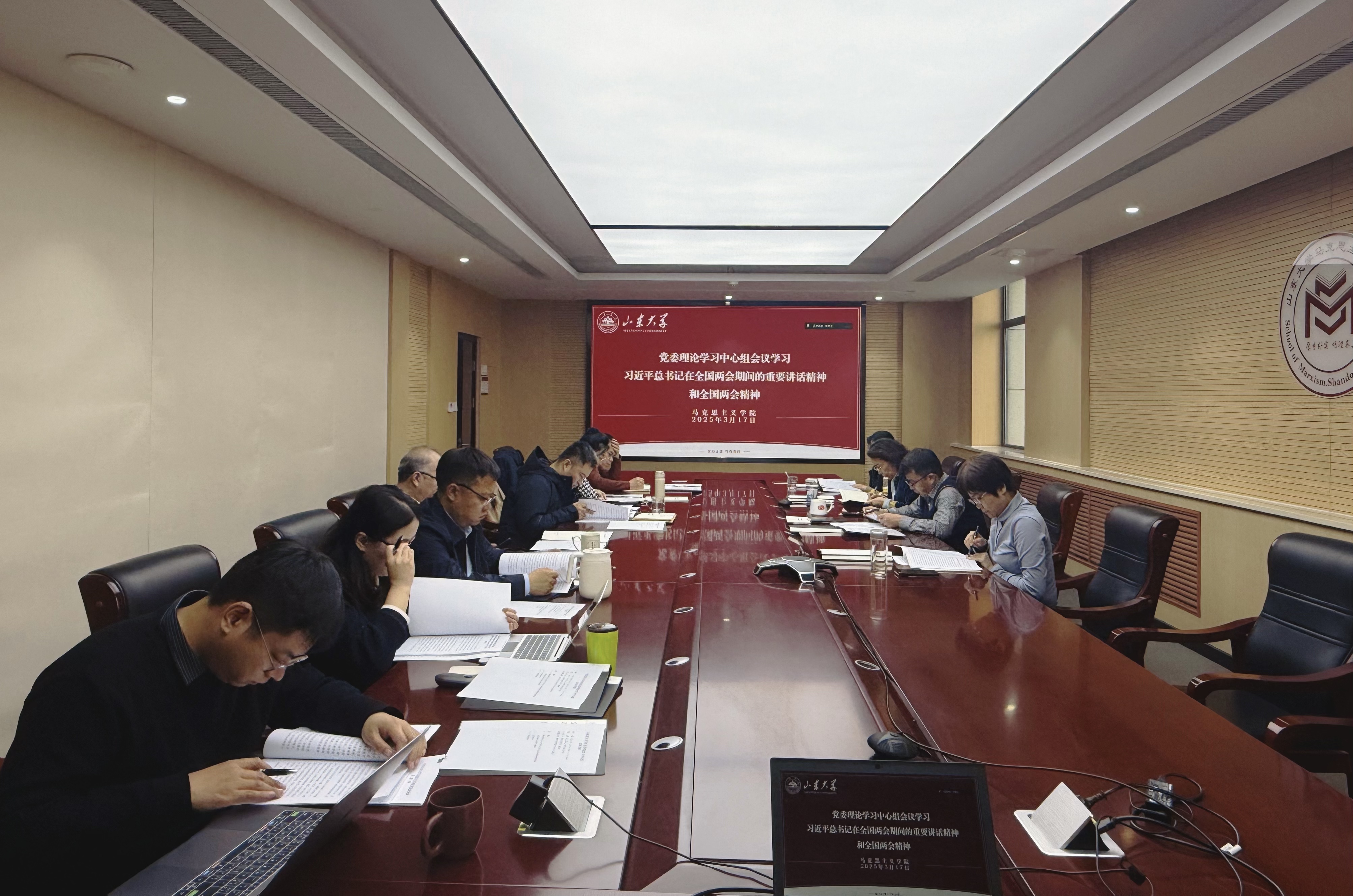 会议要求,一是坚定不移落实立德树人根本任务,着力提升思政课程质量。坚持以习近平新时代中国特色社会主义思想铸魂育人,持续推动思政课建设和党的创新理论武装同步推进、思政课程和课程思政同向同行、思政教育“小课堂”和社会“大课堂”有效融合,以党建共建合作等方式引领大中小学思政课一体化建设。二是坚定不移深化综合改革,系统谋划学院创新发展。站在党和国家事业发展全局的战略高度,围绕“国之大者”,紧密对接国家战略急需,把握好山东省哲学社会科学创新工程试点契机,开展有组织教学科研,在大成果、大项目上实现突破。三是坚定不移强化责任担当,确保两会精神落地见效。对标对表党中央对教育工作的总体部署和学校工作要点,以《纲要》和三年行动方案为牵引,充分发挥基层党组织的战斗堡垒作用和党员先锋模范作用,立足岗位,激发热情,以实干、实绩、实效为世界一流大学建设贡献马院力量。