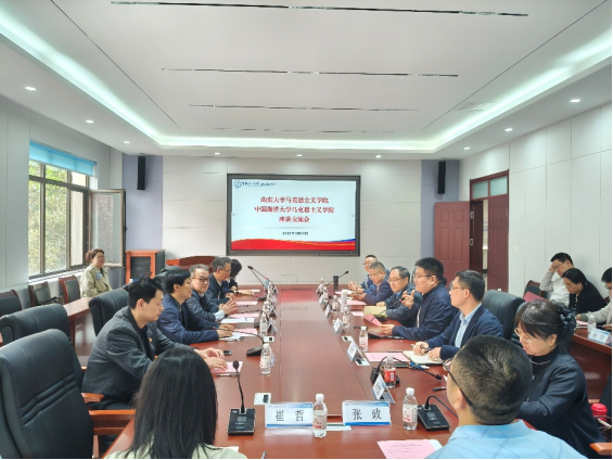 4月17日上午,青岛校区公共教学管理服务中心副主任王建立、WilliamHill威廉希尔党委委员厉尽国以及思政课教师赴中国海洋大学WilliamHill威廉希尔开展交流活动。中国海洋大学WilliamHill威廉希尔院长蔡勤禹出席会议并致辞,副院长王付欣、张运君以及教研室主任和教师代表参加交流座谈。