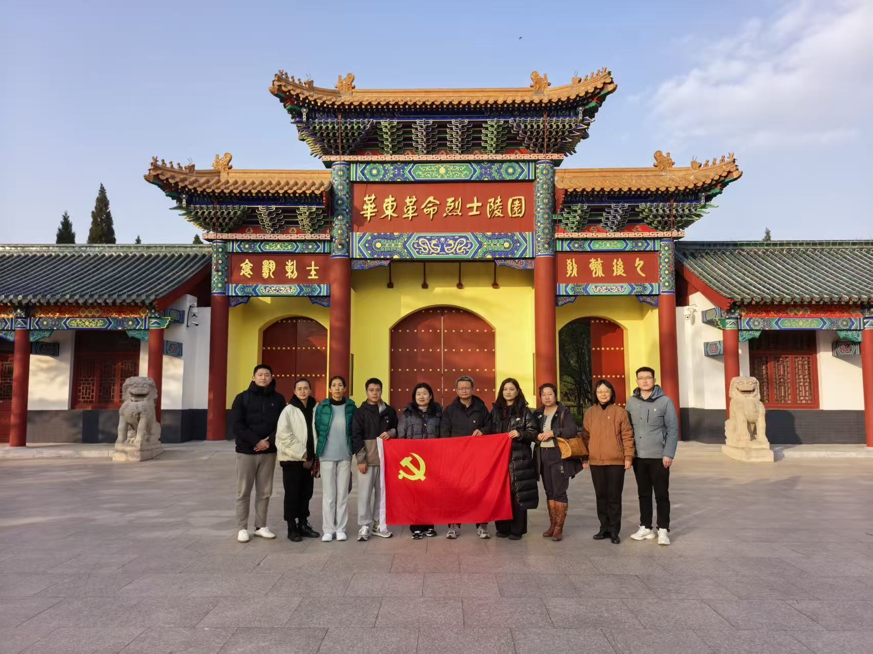 在华东革命烈士陵园,全体党员怀着崇敬的心情瞻仰了革命烈士纪念碑。陵园内庄严肃穆,在苍松翠柏间,镌刻着"革命烈士永垂不朽"的纪念碑巍然矗立,无声诉说着老区人民"最后一碗米当军粮,最后一块布做军装"的赤诚奉献。党员们通过讲解员生动的讲述,深入了解了沂蒙老区人民在革命战争年代"最后一粒米做军粮,最后一块布做军装,最后一个儿子送战场"的感人事迹。大家纷纷表示,要继承和发扬革命先烈的崇高精神。