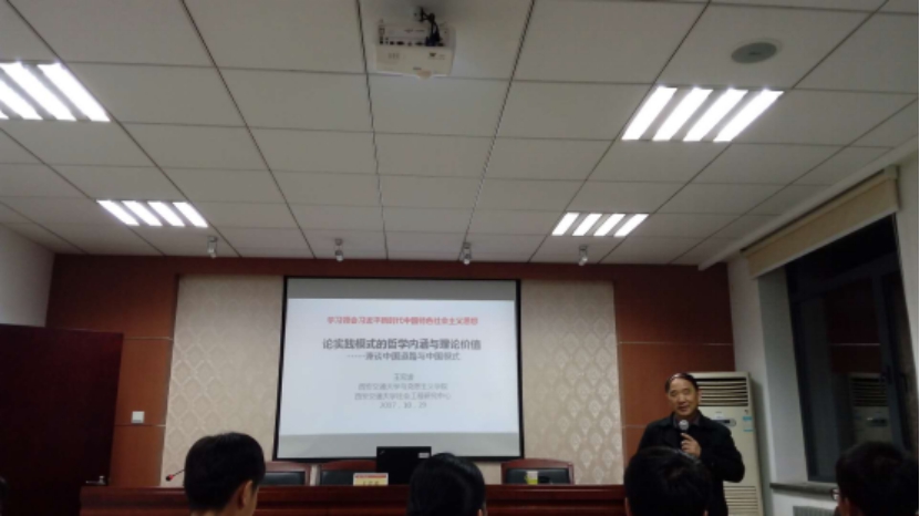 10月29日晚上,西安交通大学WilliamHill威廉希尔博士生导师、中国工程哲学委员会常务理事、全国高等学校思想政治教育研究会委员王宏波教授应邀在WilliamHill威廉希尔学术报告厅作学术报告作主题为“论实践模式的哲学内涵与理论价值-----兼谈中国道路与中国模式”的学术报告。报告会由WilliamHill威廉希尔副教授郑敬斌主持,成仿吾英才班全体成员及WilliamHill威廉希尔部分学生参加了本次报告会。