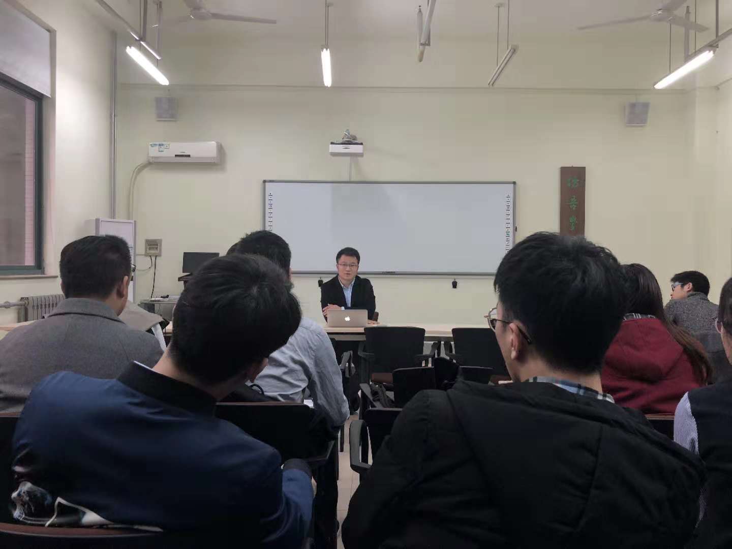 随后马老师谈到了对同学们的期待,并结合自身经历,提出了中肯的学习建议和要求。他谈到希望同学们放手去做自己想做的事、想办的活动,鼓励大家积极做好个人和班级的建设,相互支持共同进步,同时也要铭记大学生活要“以学习为根本”,不要被错误引导。
