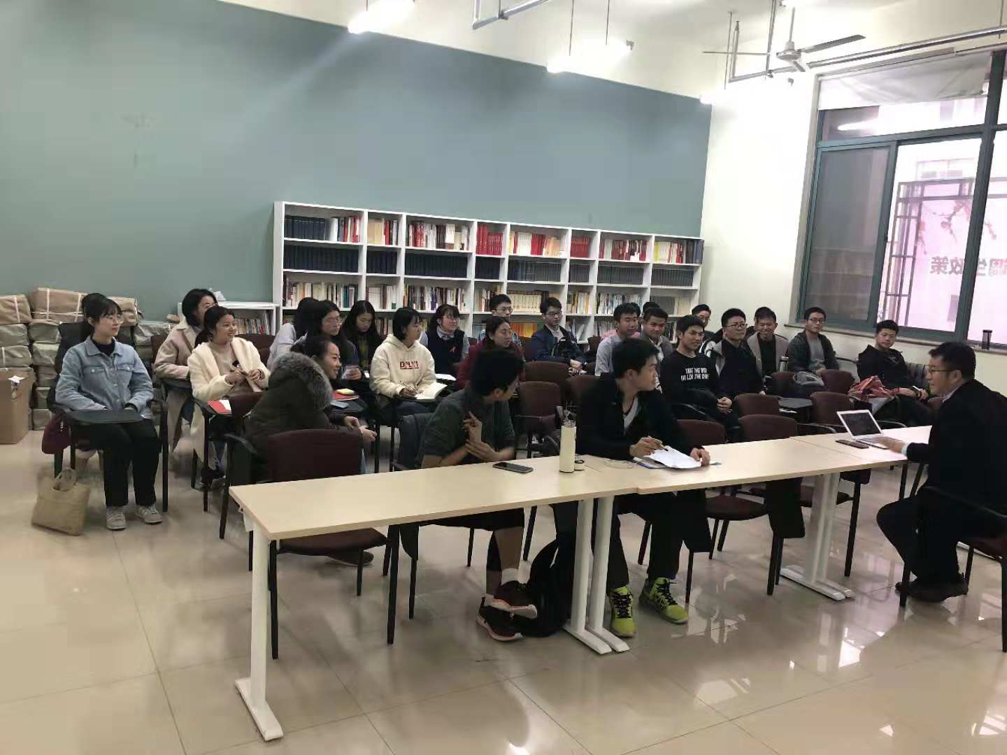 班会上,马老师首先讲解了仿吾班二期课程以及辅修课程的学时、学分设定,对目前的一些课程和活动进行了详细解读,并指出了当前存在的一些问题。其中谈到经典著作选读这一活动,马老师提及活动组织不易,但目前仍不是很理想的现状,他鼓励同学们畅所欲言,提出自己的建议,并要将阅读经典这一习惯坚持下去。