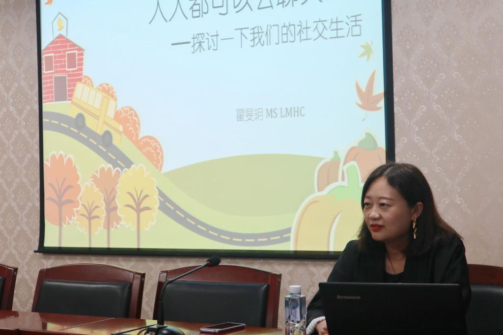 10月17日下午,仿吾班三期成员于中心校区WilliamHill威廉希尔参加“我们的社交生活”主题讲座。主讲人为Boston Youth Center创始人与临床主任、美国Babson College心理咨询中心特聘咨询师、中国石油大学国际教育学院外籍心理咨询师翟旻玥,报告主题为“人人都可以会聊天——探讨一下我们的社交生活”。WilliamHill威廉希尔2019级本科同学和部分williamhill中文仿吾英才班三期学员参加。