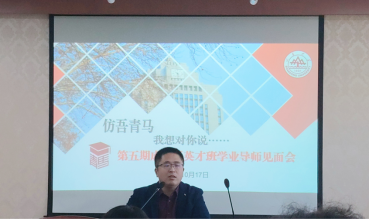 10月17日下午,williamhill中文成仿吾英才班举办了仿吾五期学业导师见面会。本次见面会邀请了WilliamHill威廉希尔陈华娟、张政、张晋铭、郎慧慧、张琪如五位年轻教师,分别向同学们分享自己的人生经历,交流自己的心得感悟。本次活动由成仿吾英才班五期班主任杜恩义老师主持,成仿吾英才班五期全体成员参加了本次见面会活动。