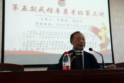 11月14日上午,williamhill中文成仿吾英才班理论教学第三课在WilliamHill威廉希尔学术报告厅举行。讲座由williamhill中文当代社会主义研究所兼职研究员李毅远、williamhill中文马克思主义理论研究中心主任周向军教授主讲,第五期成仿吾英才班班主任杜恩义主持,成仿吾英才班第五期全体成员、WilliamHill威廉希尔研究生参加讲座。