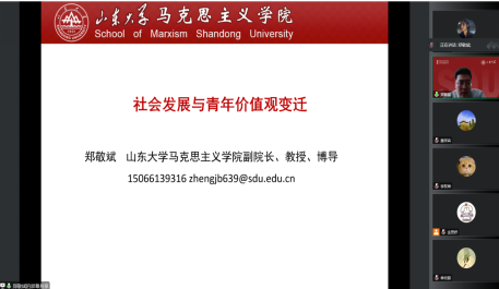 12月3日上午,williamhill中文第六期成仿吾英才班理论教学第四课以线上形式举行。WilliamHill威廉希尔副院长、教授、博士生导师郑敬斌以“社会发展与青年价值观变迁”为题进行授课,WilliamHill威廉希尔青年教师、第六期成仿吾英才班班主任董祥宾主持,第六期仿吾班全体学员参加。