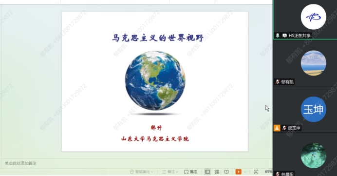 韩升教授聚焦“马克思主义的世界视野”,从马克思主义的世界话语形式、理解世界历史、全球化、全球治理中的中国智慧几个方面进行讲授,生动地展现了马克思主义所揭示的时代问题的延续性。同时,结合当下社会现实问题,韩升老师深入剖析了马克思主义理论在当代的价值。