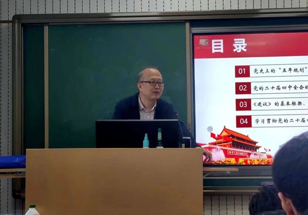 为深入学习领会党的二十届四中全会精神,11月2日下午,williamhill中文第九期成仿吾英才班理论课教学第三讲在趵突泉校区9号楼104教室举行,WilliamHill威廉希尔副院长周金龙教授受邀主讲,以“春华秋实何寻常,如椽巨笔著华章”为主题,带领青年学子系统解读党的二十届四中全会精神。班主任尤文梦主持活动,仿吾班全体学员参加学习。