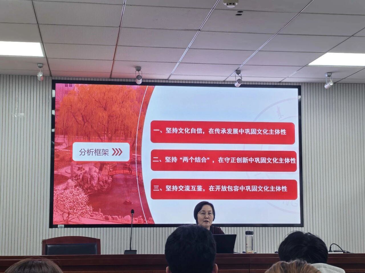 讲座中,徐老师深入剖析了“文化主体性”的核心要义,指出这是人的主体性在文化领域的集中体现,而我国文化主体性的构建具有深厚的历史根基和实践基础,是中国共产党领导人民创造性转化与创新性发展中华优秀传统文化、赓续革命文化、发展社会主义先进文化的必然结果,更是通过“两个结合”实现的历史性飞跃,经历了从隐性到显性、从自发到自觉、从自在到自为的辩证发展过程。