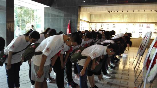 庄严肃穆的气氛包裹着这里的一草一木,一切都是如此的寂静而沉默。长梯两侧,松柏常青,上演着庄重哀婉的默片。在何旭老师的带领下,两位学生代表手托花圈,大家随在花圈之后,步伐整齐地走向堂内的英雄纪念碑,向千千万万的革命先烈们致以了最悲痛的哀悼与最诚挚的感恩。开辟井冈山革命道路的过程中涌现出的无数英雄事迹给每一个“小青马”的内心都带来了深深的震撼,同学们更加深刻地感受到了先烈们为革命而英勇献身的大无畏精神。