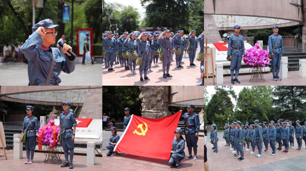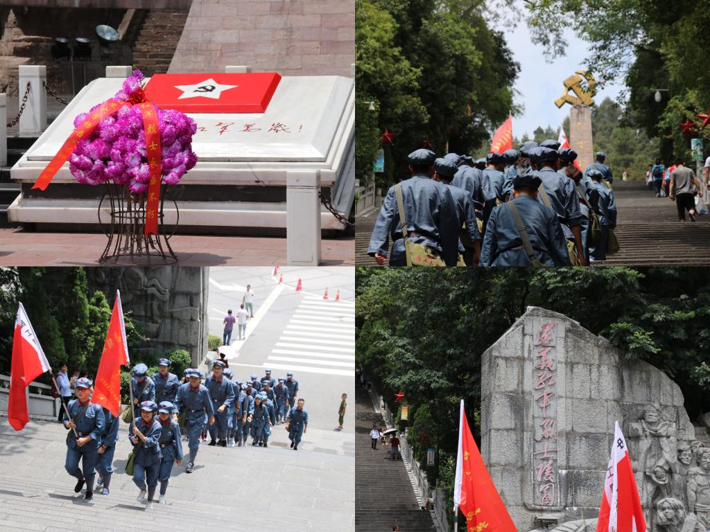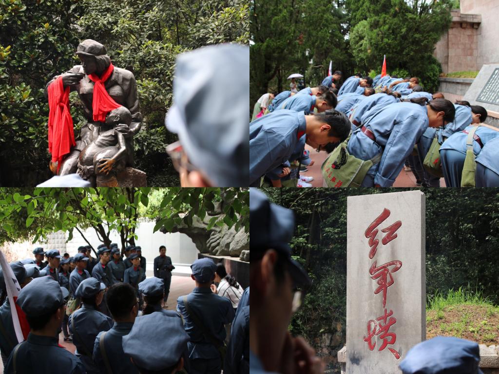 下午,怀着对先烈们地崇敬与缅怀,同学们来到红军山,瞻仰了红军山烈士陵园。在刻着“红军烈士永垂不朽”八个金光闪闪大字的纪念碑下,同学们列队向革命先烈敬献花篮,并举起右拳庄严宣誓。跟随着烈士陵园的现场教学老师,同学们瞻仰了红军烈士英烈墙、邓萍烈士墓、红军坟,在红军卫生员纪念铜像前聆听着带队老师对邓萍烈士与“红军菩萨”——龙思泉烈士的革命故事声情并茂的讲述,情至深处,革命先烈的故事不禁让同学们泪洒现场。身着红军装的同学们几次脱帽肃立并三鞠躬,向烈士们表达自己由衷的感恩和缅怀之情。