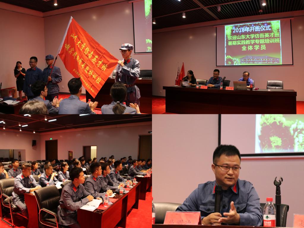 赵福超首先对全体同学学习红色教育革命文化的到来表示欢迎,紧接着为同学们介绍了遵义的两处“红色印记”,也对同学们提出了传承红色基因,发扬红色文化的期望。随后,马明冲在动员讲话中谈到了三点,首先是抒发了自己来到“红色渊源”——遵义后,对先烈、老区的敬佩与感恩,对当下的我们重走先烈之路所怀有的的激动之情,并且为同学们讲述了山大老校长成仿吾先生与遵义的渊源。最后他对同学们提出了在暑期实践教学中“多听多看多感悟,磨练素养、砥砺品质”的要求。随后的授红军军旗、授班旗两大环节,更是将整个开班仪式推向高潮。