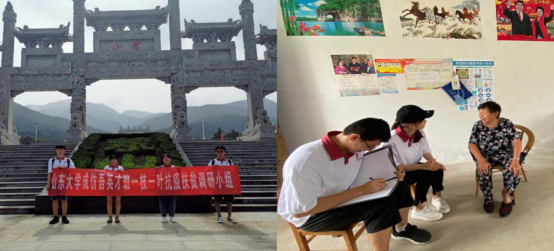 “一枝一叶”抗疫扶贫小队队长亓秋月,队员范益宁、周冠辰、刘慧杰与山东省临沂市蒙阴县扶贫办主任姜前运进行了座谈交流,了解疫情对当地扶贫工作造成的不利影响以及基层政府在应对疫情过程中所采取的应对措施。此外,队员还实地考察了山东省临沂市蒙阴县沂蒙山景区,了解疫情背景下景区的复工情况、政府的帮扶政策。在安徽省长丰县庄墓镇,“一枝一叶”抗疫扶贫小队队员邵点、杨智豪走入村民家中,了解疫情期间村镇的抗疫举措,掌握村民的主要经济来源和生活基本情况,认清扶贫政策给当地民众带来的福利。