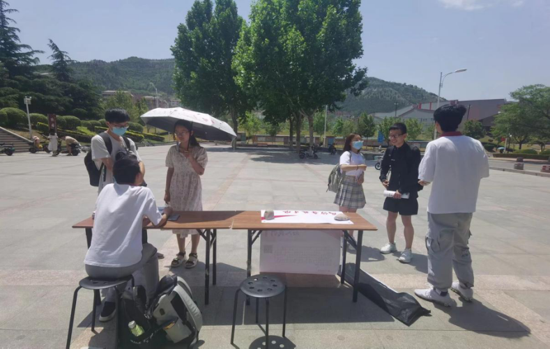 5月29日中午,成仿吾英才班四期学员分别在中心校区齐园南门和兴隆山校区欣园西门设置线下展台,为拟了解五期学员招募相关信息的同学提供咨询、指导和答疑服务。仿吾四期学员向大一同学发放前期精心制作的五期学员招募宣传册,并积极宣传仿吾班的理论教学、实践教学、主题团日、社会调研、志愿服务、校庆献礼活动等一系列班级常规与特色培养活动。展台现场,仿吾四期学员通过海报、宣传册、答疑、相片展示等多种形式为大家系统介绍仿吾班近四年来的建设成果。同时,四期学员也积极对大家的疑问进行解答,让更多同学在仿吾班的课程体系、课程内容、上课时间、学分置换、选拔方式等方面有更为清晰的认知。