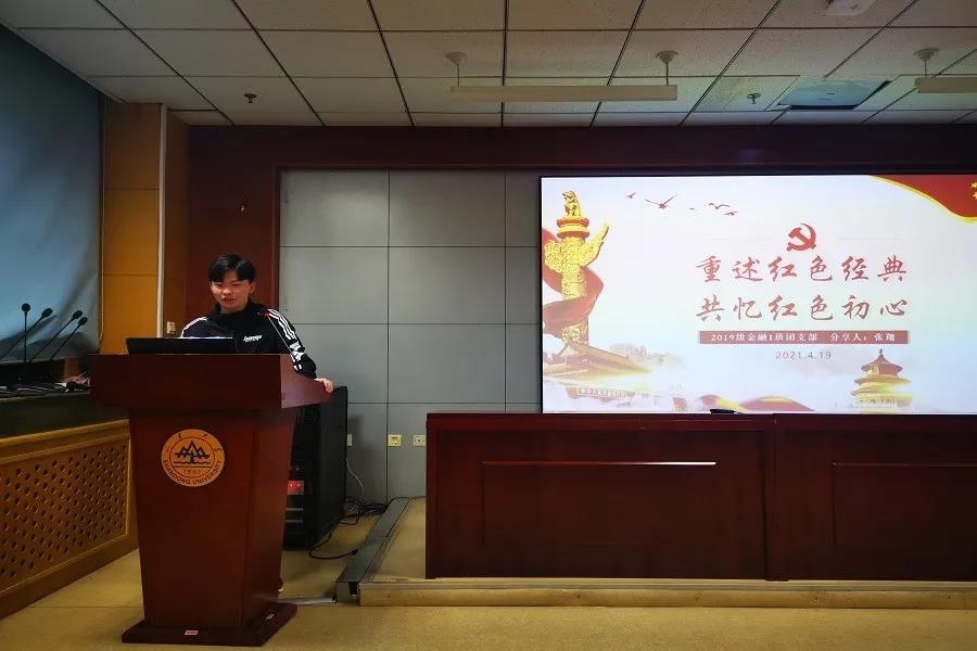 在经济学院分享部分,2019级各班学生代表紧扣时代脉搏,以历史事件或革命先烈的事迹为线索,结合自身经历,全方面地介绍党史故事。经济班的张少州同学以“隐形守护者-中央特科”为主题,介绍了中央特科建立的整个过程。接下来的国贸班学生代表李浩文以刘伯坚的经历为主线,讲述了革命先烈刘伯坚的英勇事迹。金融一班学生代表张翔用“忠实”“坚定”“勇敢”“负责”四个词,高度概括了革命先烈罗忠毅的一生。随后,金融数学班的学生代表滕雨欣和毛若彤带领大家回望往昔,追忆“吃水不忘挖井人”的感人故事。来自PPE班的白轶真结合学科特色,讲述中国社会主义经济建设者和奠基人之一陈云的主要事迹。财政一班的车虎从刘伯承元帅的视角讲述遵义会议对于我党我军我国革命的历史性意义。实验班的朱欣然同学则选择了陈望道翻译《共产党宣言》的故事。除此之外,中共一大、秋收起义以及延安整风运动等在中国共产党发展历程中的主要事迹也是同学们关注且感悟深刻的话题。