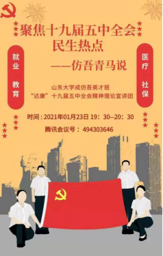 最后,“达康”宣讲队将正式宣讲的时间定于1月23日晚19:30,希望能让听众们更好地理解党的十九届五中全会的精神。