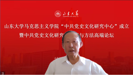 会议第二阶段为中共党史文化研究的理论与方法高端论坛。研讨会由黄广友教授主持。中共中央党史研究室原副主任、研究中心学术顾问石仲泉教授以《坚持科学的党史观和方法论,努力推进中共党史研究深入发展》为题作了主旨报告。他指出,从学理上研究阐释中共党史文化,对于构建中国特色哲学社会科学学科体系、学术体系和话语体系具有重要作用。山东在新民主主义革命文化和中国特色社会主义文化方面,拥有十分丰富的文化资源,给研究党的思想文化提供了得天独厚的条件。以山东为切口研究党的思想文化,对于推动中华文化的发展具有重大的意义。他衷心祝愿研究中心发挥重要的理论阐释作用,力争为中共党史文化研究的发展作出重大的贡献。