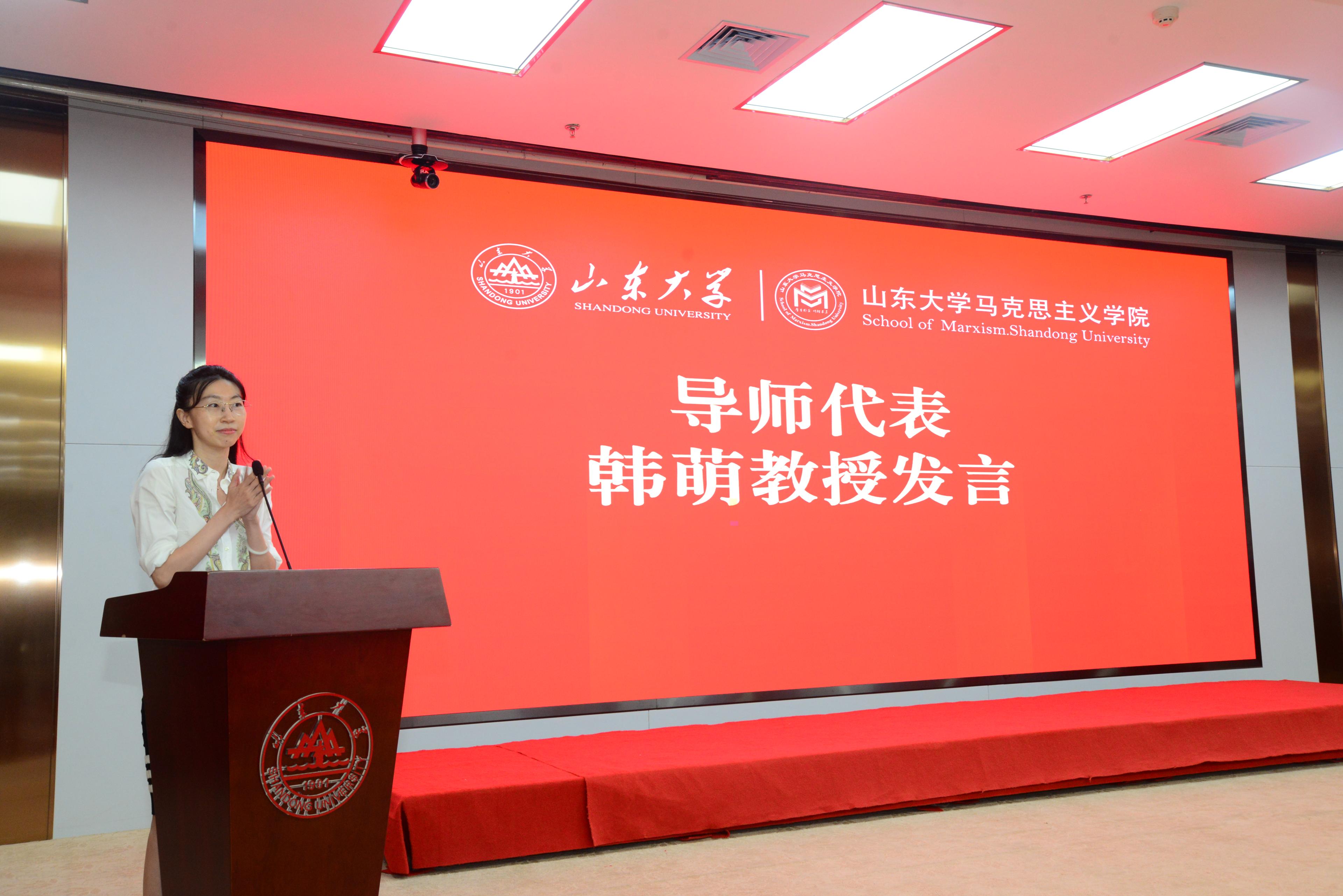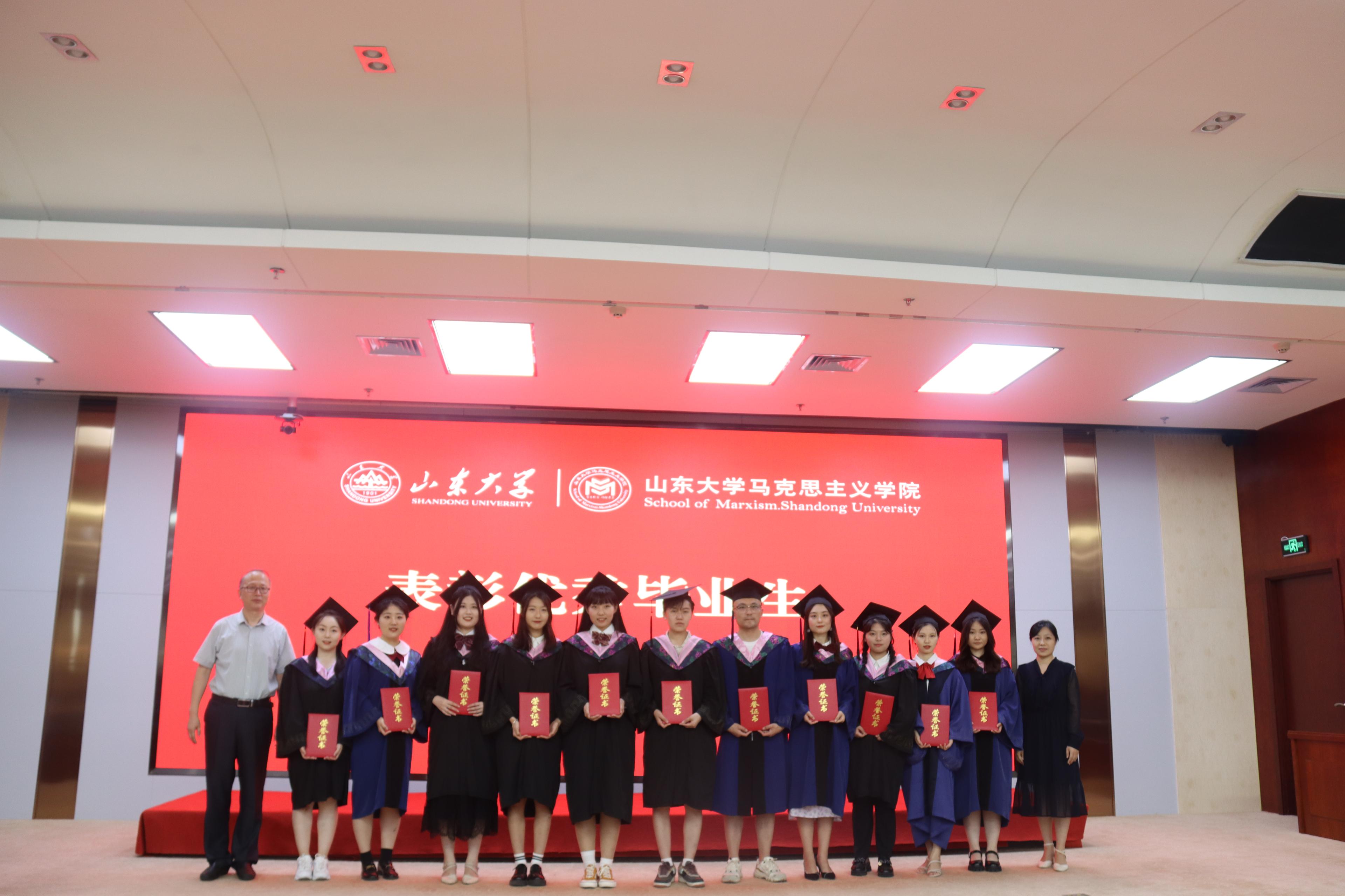 研究生代表刘晓恋、本科生代表焉祯先后发言。刘晓恋感谢马院的辛勤栽培,感谢老师的谆谆教导和悉心爱护,感谢同窗的陪伴,表示将带着三年的所见、所遇、所学、所感,带着山大马院人的学识和气度,向着未来闯荡一番,以不负老师们的教诲,不负马院人的使命,在未来奋斗的道路上继续书写好人生的答卷。焉祯回顾了第一届马克思主义理论专业本科生的青春历程。四年来,他们潜心求学、修身养气;以实践为桥,探索真理之光;不断丰富自我、全面发展、砥砺奋进,争做强国青年。她表示要以青春的担当在民族复兴的道路上奋勇争先。