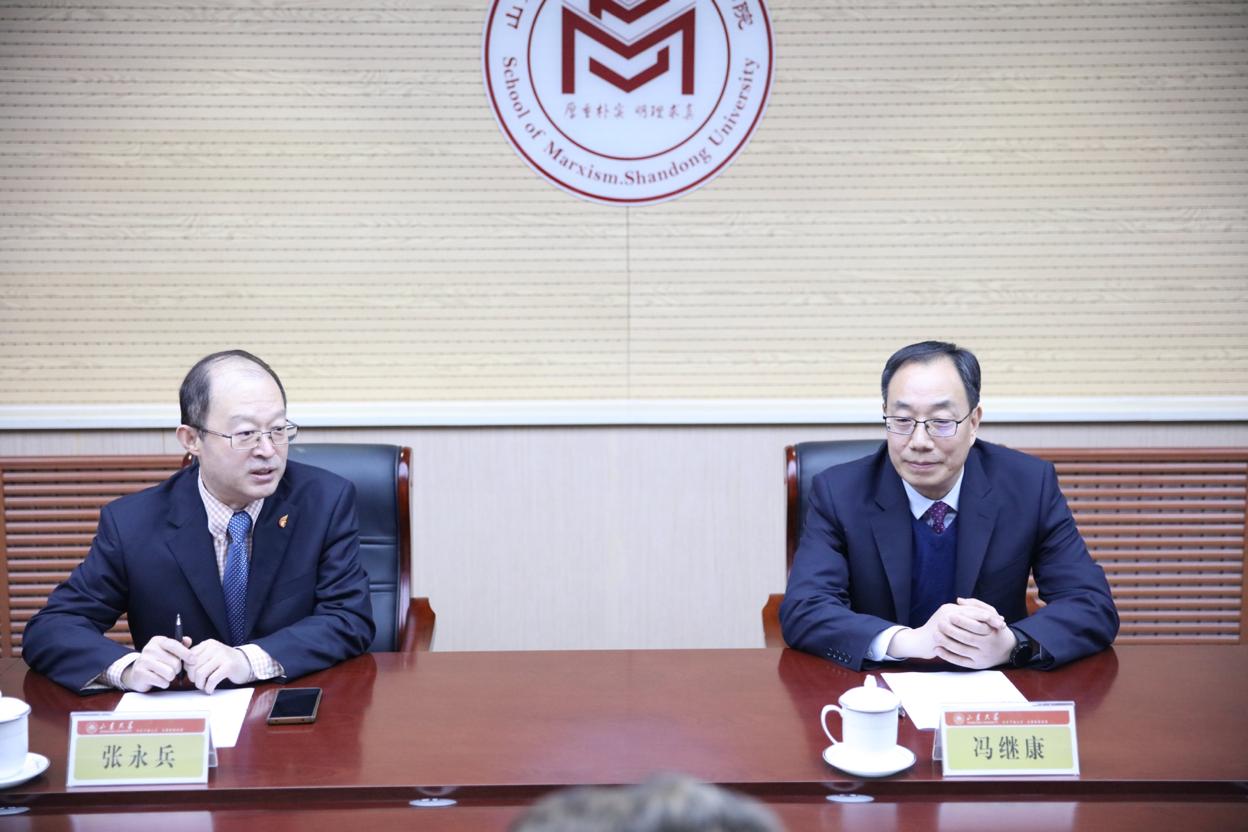 张永兵对冯继康受聘为williamhill中文博士研究生合作导师表示热烈欢迎。他指出,近年来WilliamHill威廉希尔在教师队伍数量和质量提升上持续发力,人才培养质量进一步跃升,尤其在“党的建设”二级学科建设方面更是取得了可喜成绩。党建学科是一个实践性强的学科,吸收党务实际工作者担任博士生合作导师,对于培养高质量的党建研究生有非常重要的作用。作为山东省教育厅党组副书记、副厅长,冯继康教授学术功底深厚、工作经验丰富,受聘williamhill中文博士生合作导师,必将为williamhill中文党建学科提供重要的力量支撑。他希望双方能够凝聚深度共识,携手把全国重点WilliamHill威廉希尔人才培养工作做好。