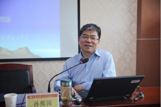 孙熙国教授以“习近平总书记对马克思主义的原创性贡献”为题做了深刻论述,主要从五个角度展开:第一,从中国共产党的性质、宗旨与指导思想原理出发,具体阐释了习近平对什么是马克思主义的精辟概括:是实现“人民群众对美好生活的向往”的科学,是“为人类求解放”的科学。第二,提出马克思主义基本原理的独特研究对象就是怎么实现人民群众的自由发展解放,习近平围绕这个主题对马克思主义原理体系进行了科学阐释,指出马克思主义基本原理是关于世界、社会的、认识的以及人的解放和自由全面发展的规律。第三,习近平深刻论述了马克思主义是科学的、人民的、实践的、不断发展和开放的理论的本质特征。第四,习近平对北京大学的关注其实是对中国共产党初心诞生地的关注,体现了他对中国共产党初心的不懈追寻。第五,习近平对时代问题的回答和时代任务的完成做出了决定性贡献、发挥了决定性作用。同时,孙熙国教授还就习近平新时代中国特色社会主义思想的历史定位和实现伟大复兴的三个前提为同学们点明了习近平新时代中国特色社会主义思想的重大贡献和历史使命,以深入浅出的讲解为我们道出了习近平新时代中国特色社会主义思想能够为中国和世界人民拥护、能占领人类道义制高点的根本原因。