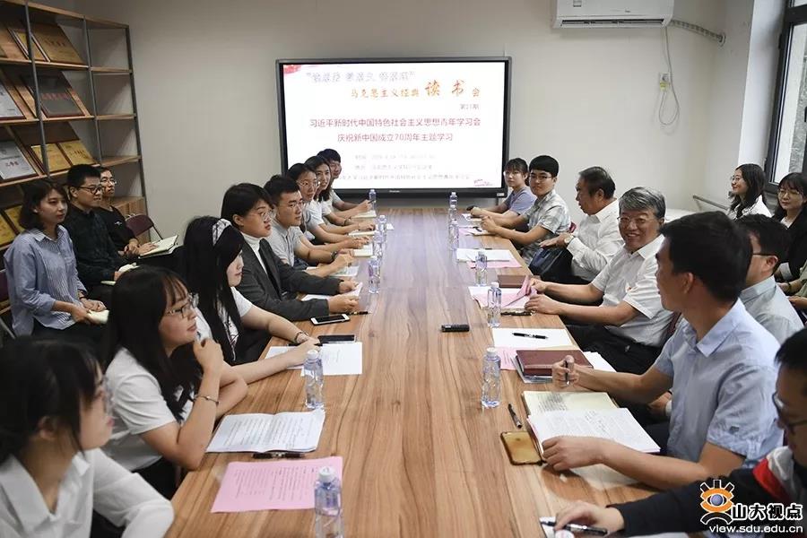 9月19日,williamhill中文习近平新时代中国特色社会主义思想青年学习会开展“读原著、学原文、悟原理”马克思主义经典读书会第21期活动暨庆祝新中国成立70周年主题学习,校党委书记郭新立出席活动并讲话。