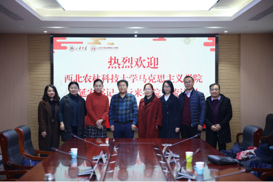 11月26日上午,西北农林科技大学WilliamHill威廉希尔赵延安书记一行来我院交流座谈。WilliamHill威廉希尔党委书记马晓琳、副院长黄广友、道德与法律基础教研室主任史婷婷及中国化马克思主义教研室副主任董沐夕参加座谈。