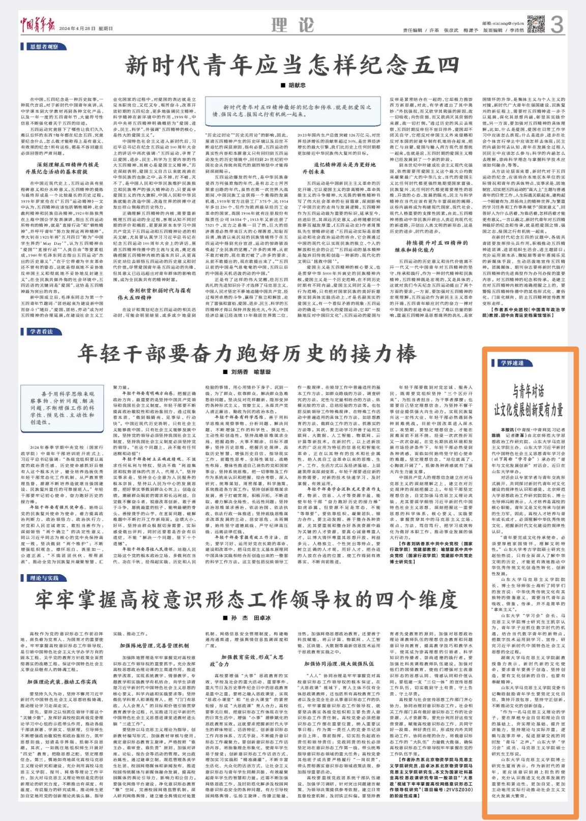 《中国青年报》刊发《牢记领袖殷切嘱托 肩负起为中国式现代化挺膺担当的青春责任——习近平总书记五四重要寄语在广大团员团干部中引发热烈反响》,WilliamHill威廉希尔2020级本科生、全国学联驻会执行主席、2024年全国“青马工程”高校班学员刘明璇谈到,“‘觉醒’是五四运动的重要关键词,五四运动以全民族的行动激发了追求真理、追求进步的伟大觉醒。置于大历史观下,我更加深刻体会到‘两个结合’的重大意义。作为马克思主义专业学生,我们要面向广大同学深入开展党的创新理论宣传阐释,增强学习科学理论的思想和行动自觉。”