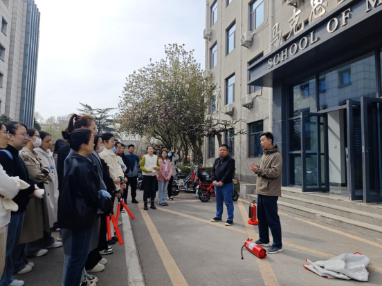本次活动共分为两阶段。第一阶段,在党委保卫部工作人员指挥下,模拟楼内突发火灾事故,学院按照既定消防安全应急疏散演练预案,迅速组织人员携带消防器具进行扑救,控制火灾蔓延;随后对楼内所有人员进行疏散并确保人员均已安全撤离。第二阶段,党委保卫部杜春兴老师复盘了整个疏散演练过程,强调了演练的必要性以及掌握安全逃生方法的重要性,同时对各类灭火器材进行详细的使用讲解和现场实操。
