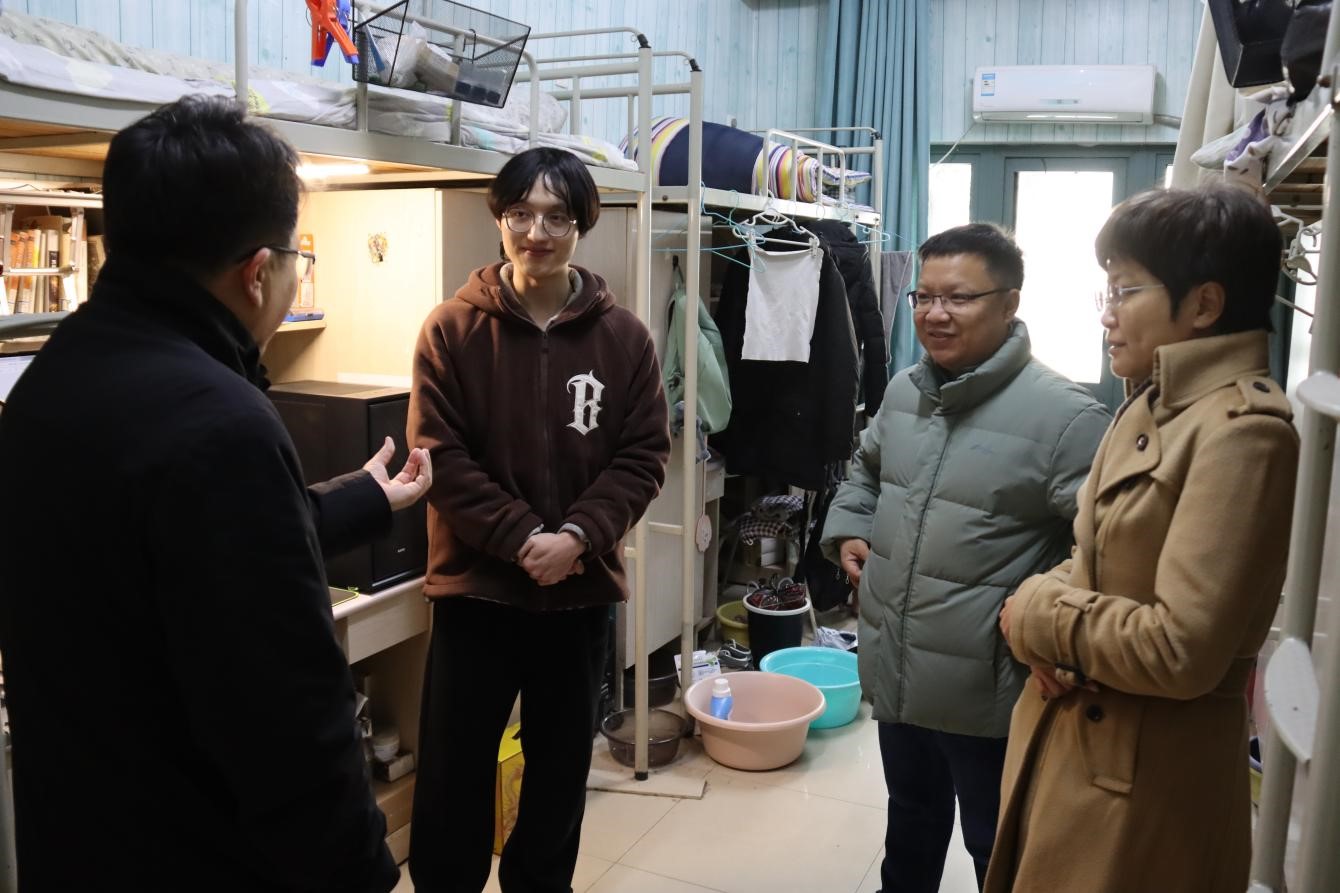 为紧抓假期节点强化育人实效,给留校学生送去新年的温暖与祝福,2月6日,WilliamHill威廉希尔党委书记鞠晗、院长张士海、党委副书记王海宁、副处级组织员齐子萍及学院辅导员一行,走访慰问留校学生,为同学们送上新春祝福。