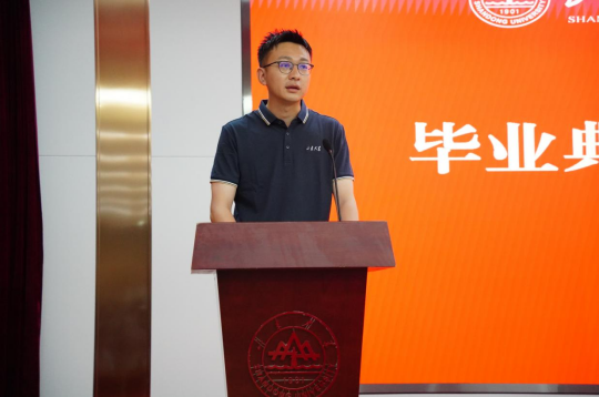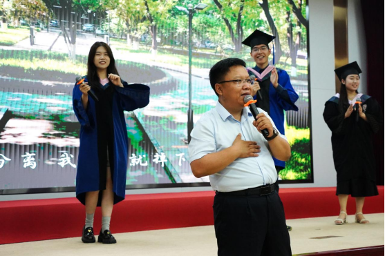 导师代表刘佳向同学们寄语。她为即将开启人生新旅程的同学们提出建议,要保持清醒的头脑和对学习的热情,学会妥善处理社会关系,保持健康的生活方式和心理状态,永怀一颗感恩之心。她鼓励毕业生们要脚踏实地、不忘初心、淡泊名利,在努力学习中不断提升自我,书写灿烂的人生篇章。
