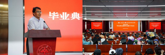 院长张士海教授代表学院致辞。他向即将踏上人生新征程的毕业生们致以热烈的祝贺和诚挚的祝愿,并向学院全体教师表示由衷的感谢。他强调,毕业生们不仅承载着学院的荣誉和期望,更肩负着时代赋予的强国建设和民族复兴的重任,应当将国家和民族的需要作为自己的人生坐标。他还向全体毕业生提出了几点期待。第一,要勇担时代重任,自觉投身实现中华民族伟大复兴中国梦的洪流中,让青春在建功立业中焕发光彩。第二,要脚踏实地、绽放青春。要踏踏实实做事,一步一个脚印地努力奋斗,终能“他日卧龙终得雨,今朝放鹤且冲天。”。第三,要自信自强、奋勇争先。要带着自信上路,要让青春在为祖国、为民族、为人民、为人类的不懈奋斗中绽放绚丽之花,谱写属于我们自己的华丽篇章。