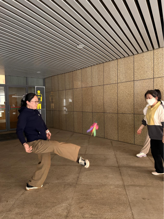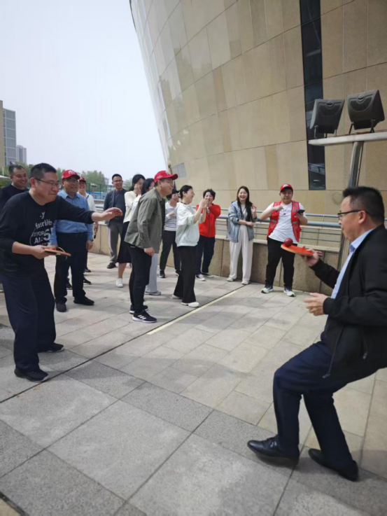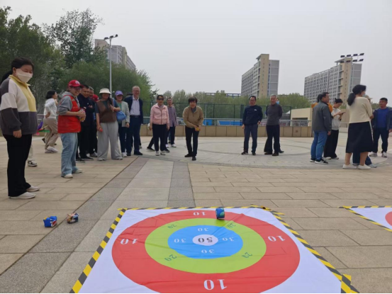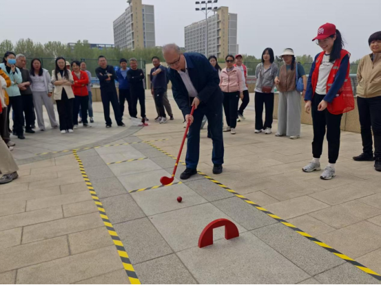 本次趣味运动会结合师生兴趣与实际情况设置了多个项目,现场氛围热烈非凡。在“沙包掷准”项目中,参赛者或躬身丈量最佳投距,或屏息凝神锁定靶心,手腕翻转间将重力与抛物线精妙编织。每一次沙包在空中划过的弧线,都承载着大家的期待。在“捶丸游戏”项目中,师生们手持梨形木槌,躬身凝视着地上的木球,如同棋手推演棋局般精心谋划,时而为一次精彩击球而欢呼雀跃,充分享受着这项传统运动带来的乐趣。“双人踢毽子”项目考验着选手们的默契配合。两人一组,相互配合着用脚将毽子踢起。毽子在空中上下翻飞,选手们的脚步也灵活移动。“乒乓球接力跑”项目将速度与技巧完美结合。选手们用球拍托着乒乓球,快速奔跑着传递接力棒。当球不慎落地,师生立刻弯腰拾起,击掌互道再来,默契的配合激起全场的加油声浪。“两人三足接力”项目更是将团队协作精神展现得淋漓尽致。选手们两人一组,将相邻的腿绑在一起,喊着整齐的口号,步伐一致地向前冲去,合作共赢的团队精神在同学们之间悄然传递。“双人背部顶球接力”项目充满了挑战与欢乐。选手们背靠背夹着球,小心翼翼地向前移动。每一次球体颠簸都激发着更精准的调整,每回意外滑落都化作躬身拾起时的相视而笑。