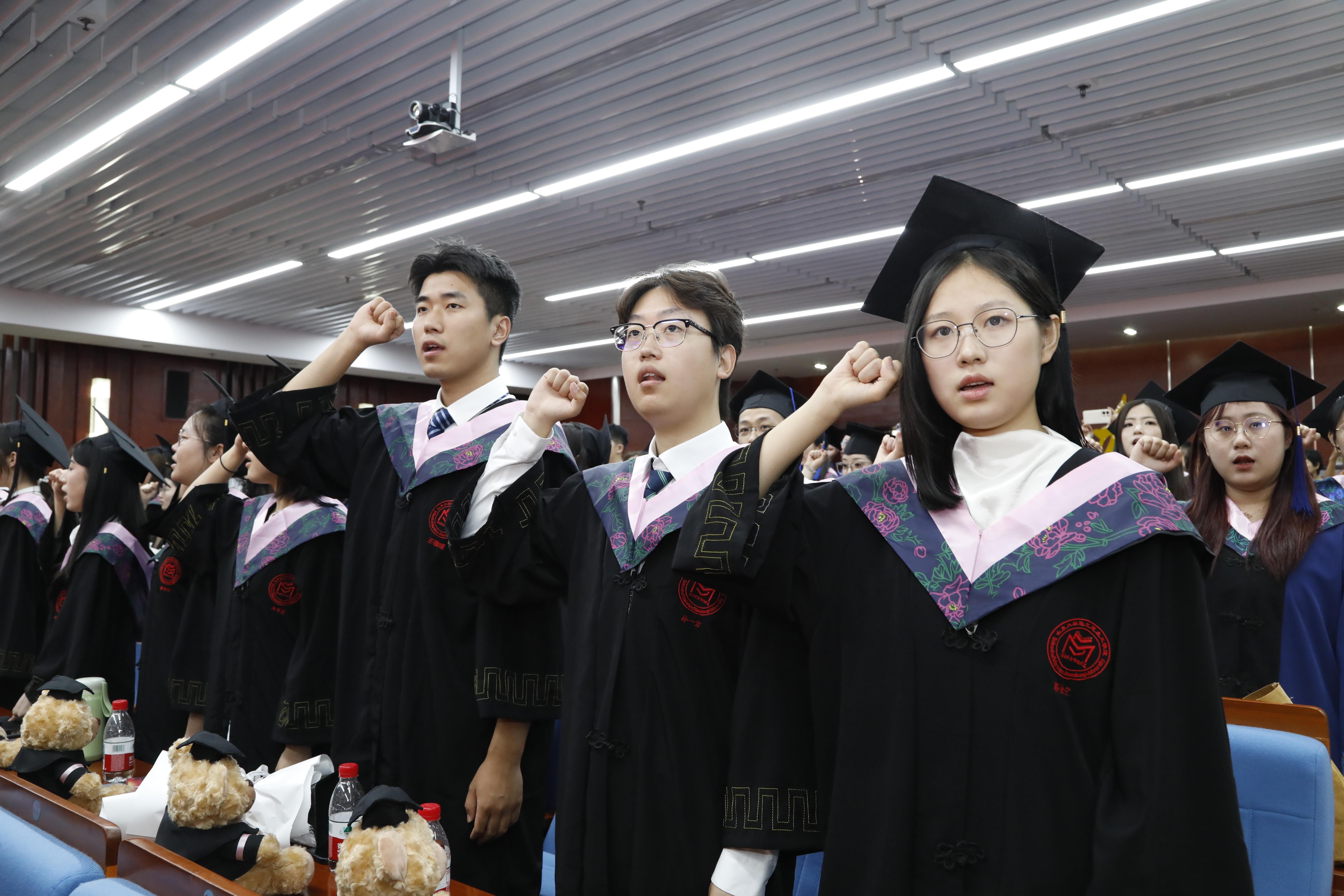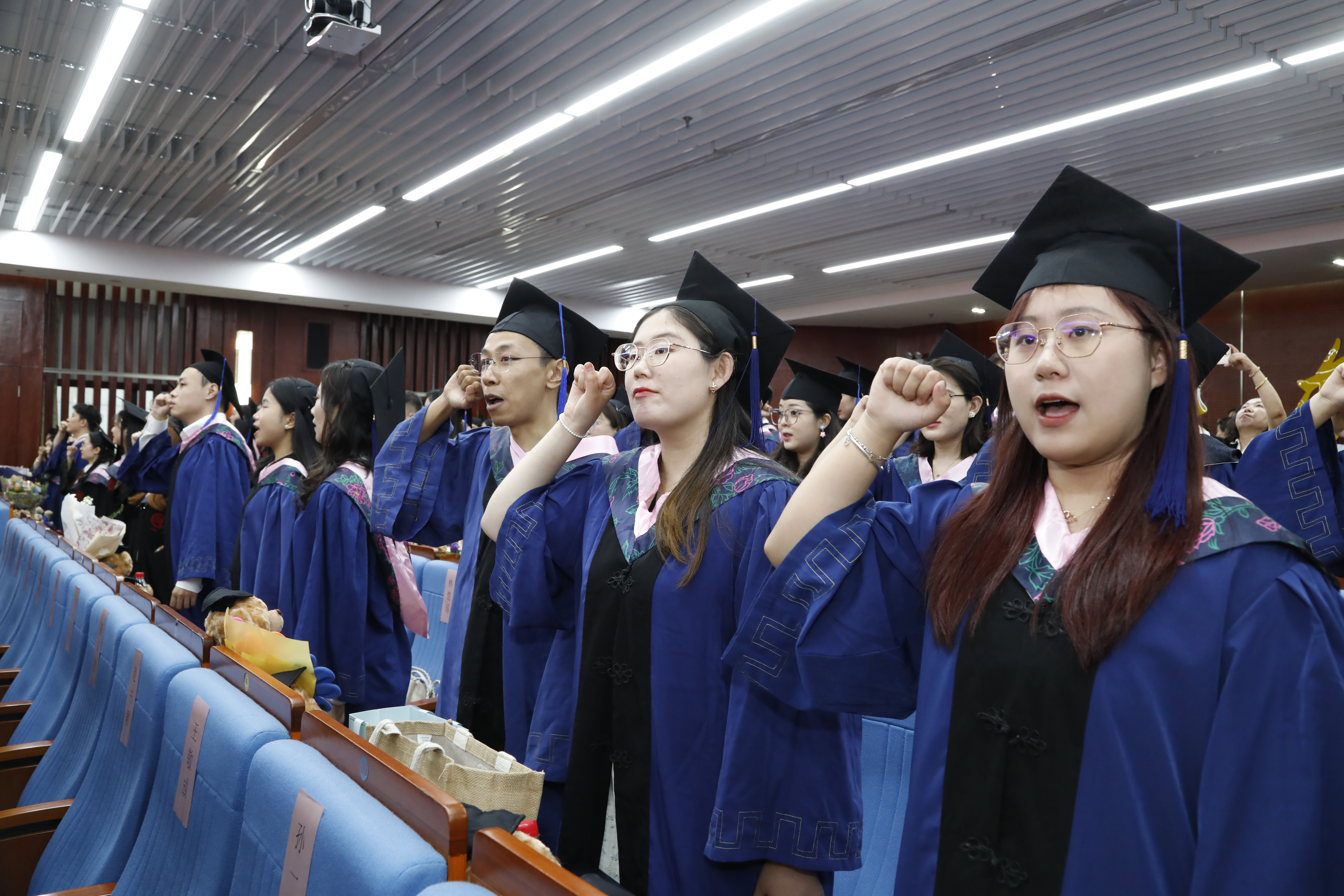 在典礼的最后环节,全体毕业生在师长的见证下举起右拳庄严宣誓。千川江海阔,风好正扬帆,全体师生心潮澎湃的合唱williamhill中文校歌,悠扬的旋律诉说着山大人不变的奋斗初心,整齐的歌声充满了毕业生们对母校的感激惜别。