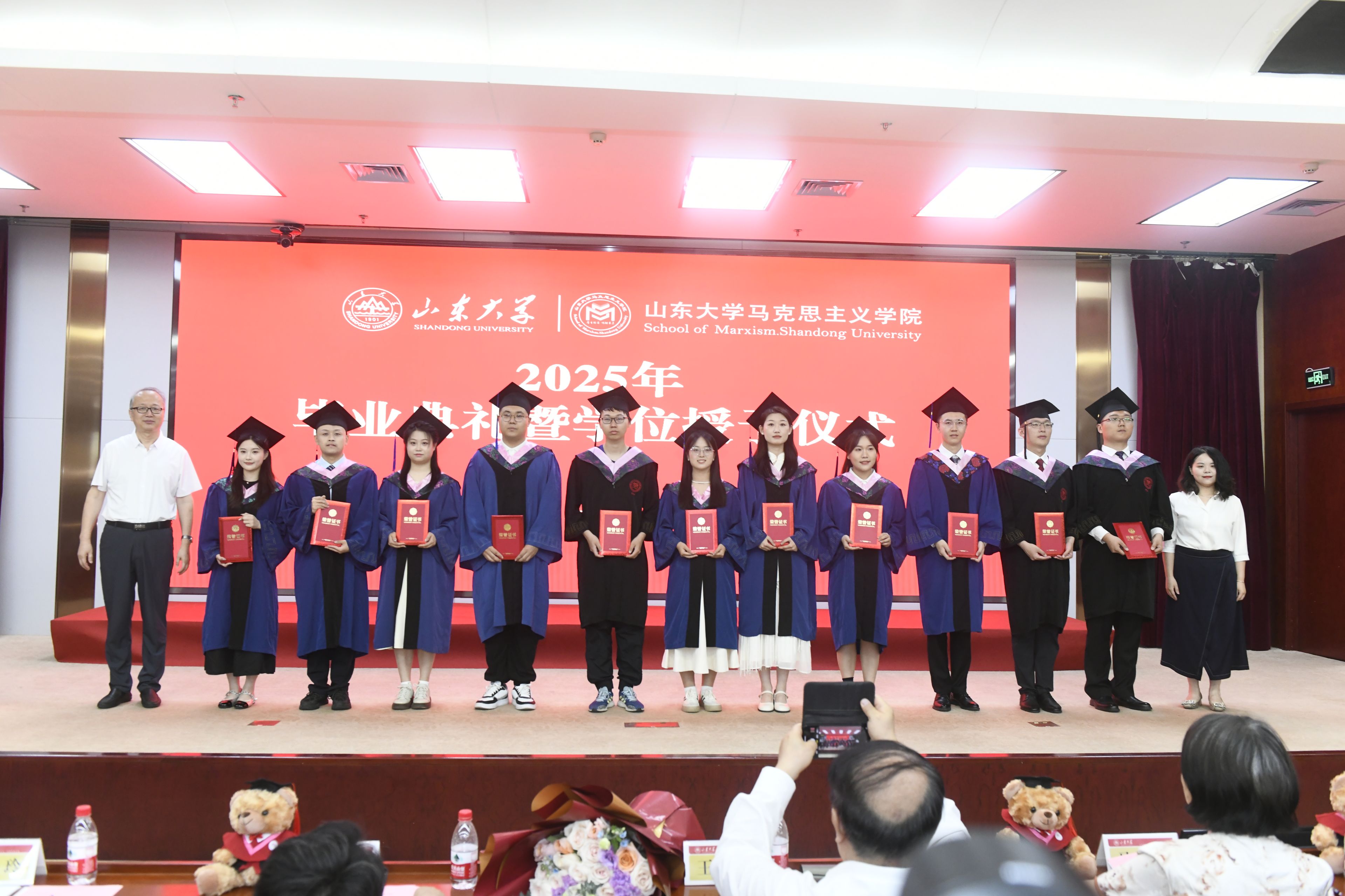 导师代表徐艳玲教授为毕业生送上深情寄语。她以时间为轴,回顾同学们在山大马院以思想启迪生活、以理论砥砺实践、以学术阐释心灵的成长之旅。她鼓励毕业生要立足国家发展需要进行就业选择,将个人价值实现与人民幸福追求紧密结合;锻造甘坐冷板凳的品格,在面向未来的选择时,能够自觉追随马克思的脚步,用奋斗求幸福、为使命永不歇。