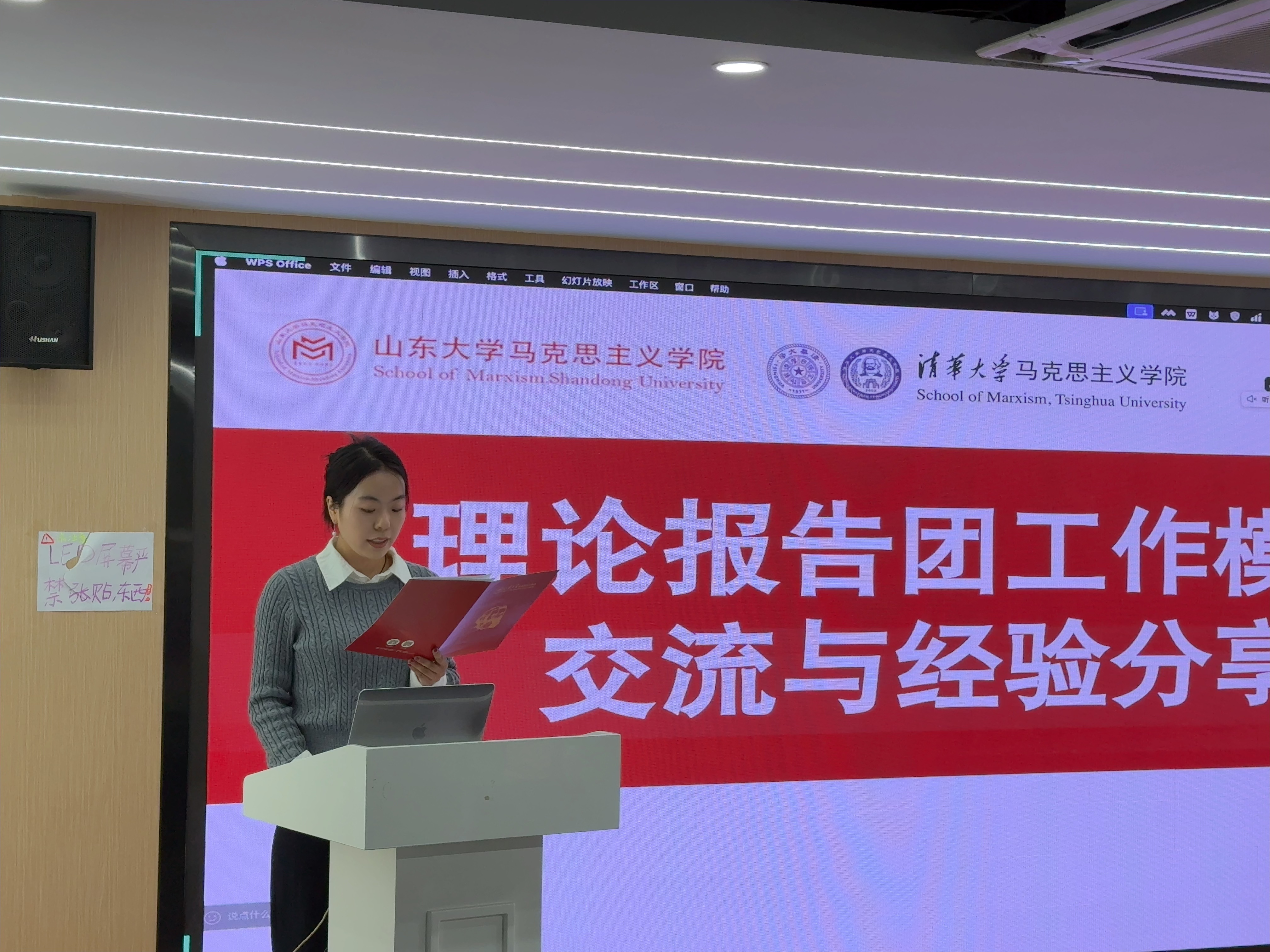 理论报告团工作模式交流环节,williamhill中文“习习会”党支部书记周顺洁系统介绍了社团的建设情况、品牌活动及“支部+社团”的创新模式,展现了山大学子在理论学习和实践传播中的积极探索。清华大学WilliamHill威廉希尔理论报告团团长秦浦峰从组织架构、宣讲主题及特色活动三个方面详细分享了团队建设经验,为两校青年的理论宣讲工作提供了宝贵借鉴。