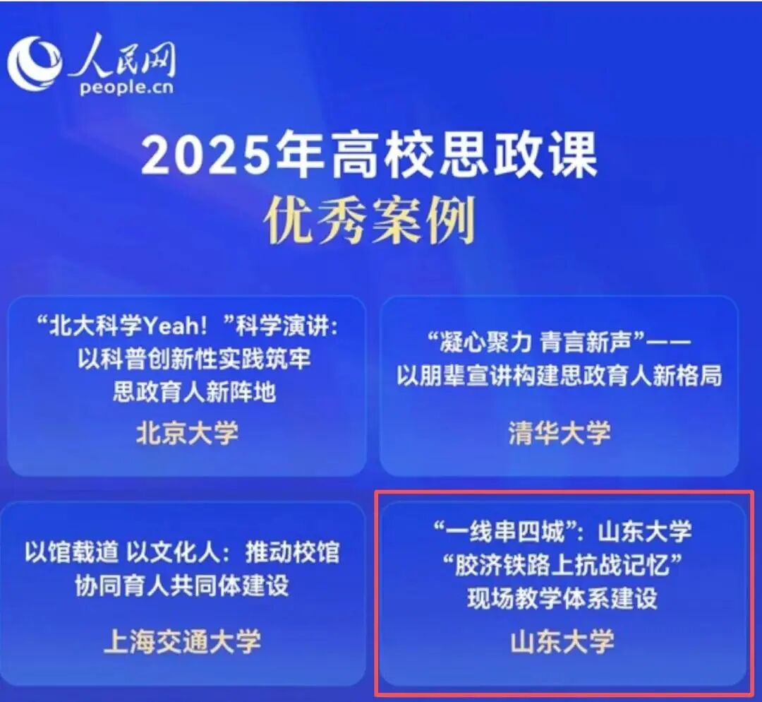 12月29日,以“人工智能赋能教育创新 推动高等教育高质量发展”为主题的人民网2025大学校长论坛在广西大学举行。论坛上,人民网发布2025年高校思政课改革创新情况分析报告,并根据各高校推进思政课改革的社会反响、信息传播量、主流媒体关注度、舆论反馈情况等维度,推介20个优秀思政课程案例,以期为高校思政课改革创新提供借鉴启示。“‘一线串四城’:williamhill中文‘胶济铁路上抗战记忆’现场教学体系建设”案例成功入选2025年高校思政课优秀案例。
