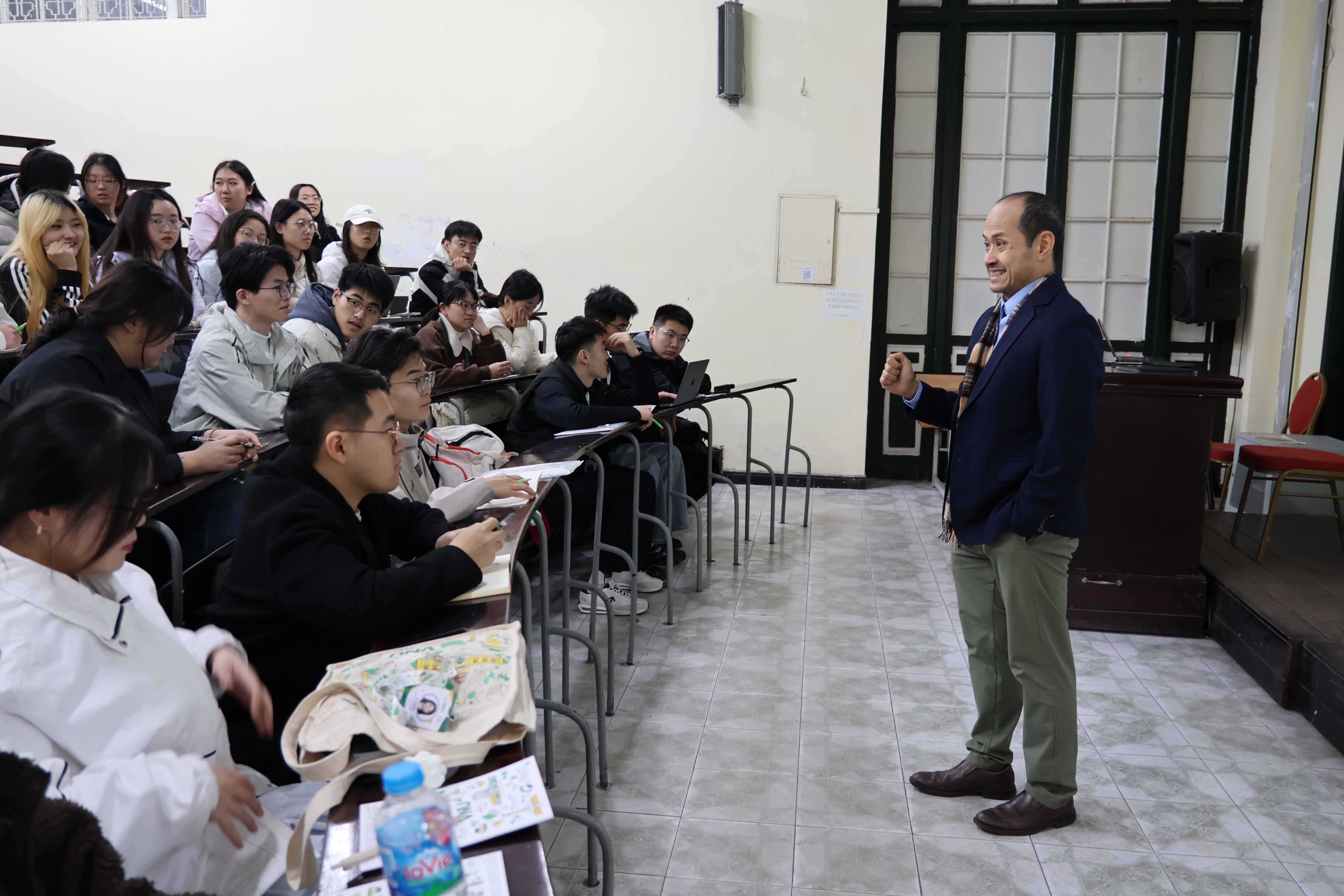 下午,研学团听取越南河内国家大学所属经济与管理大学Vu Thang Pham博士主讲的“中越经贸与投资关系”专题授课。范武唐博士从中越各自产业优势出发,梳理双方经贸往来,展现两国互利共赢格局。他聚焦制造业转移、基建、农业产业化等领域,结合RCEP生效后的区域经济趋势,解读关税减免等政策机遇,同时剖析地缘政治、供应链波动等挑战,强调中越深化合作的重要性,搭建了清晰的理论框架。