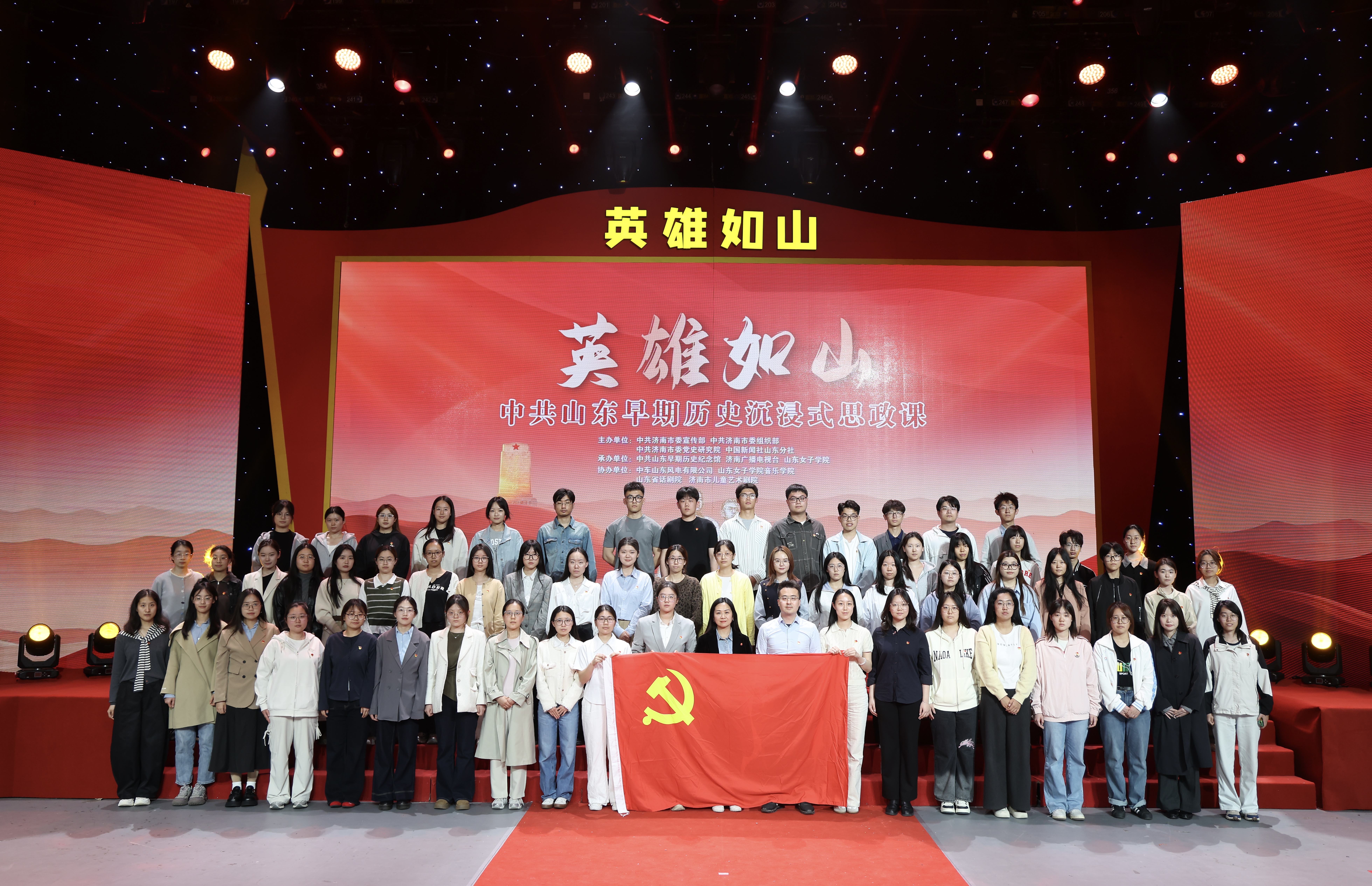 《英雄如山》沉浸式思政课以情景剧、朗诵、歌舞等艺术形式,生动再现了1919—1937年山东早期共产党人坚守初心、勇担使命的革命征程。课堂上,王尽美、邓恩铭等革命先驱的事迹感人至深,将历史场景与艺术表达深度融合,打破了传统思政课的时空边界,让红色历史可感可触、入脑入心。同学们凝神聆听、用心感悟,在历史与现实的对话中读懂信仰的重量,深刻理解伟大建党精神的丰富内涵,进一步坚定向党组织靠拢、以青春赴使命的理想信念。
