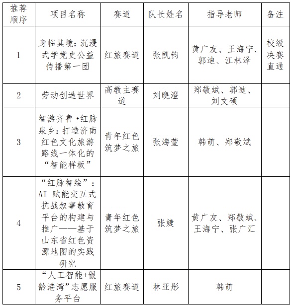 经自主申报、资格审查、学院评审等程序,我院已完成院级选拔工作。根据评审结果,决定推荐以下5个项目晋级校级复赛,现予以公示: