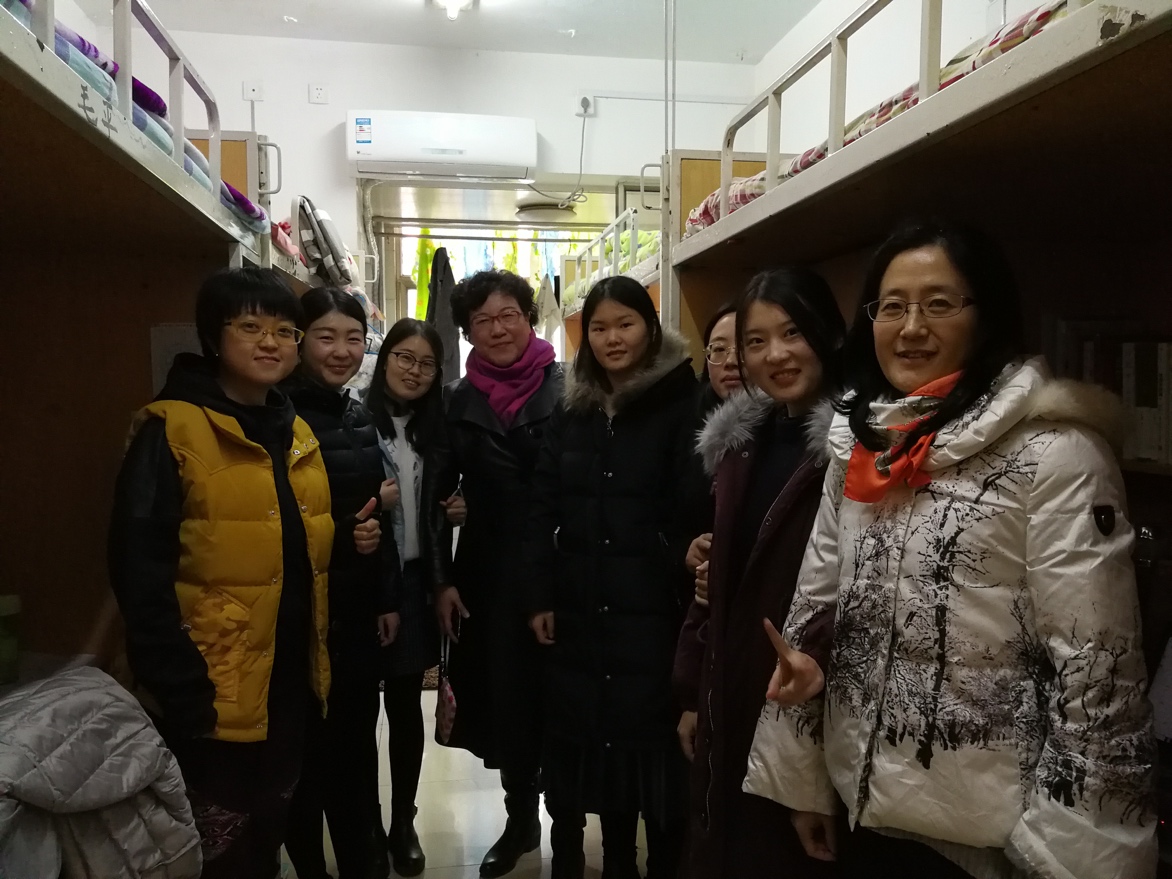 每到一处,夏晓虹都详细询问博士生在学习生活中遇到的困难,叮嘱学生有问题要随时向她反应,她还仔细查看了学生的住宿情况和学生宿舍存在的具体问题。在一楼学生宿舍,当看到宿舍墙皮脱落时,夏晓虹不仅关心学生睡觉是否受到影响,还叮嘱随行同学做好问题记录以便后期向学校及时反馈相关问题。在博士四年级宿舍,夏晓虹与学生郭庆玲进行了亲切地交谈,不仅主动了解其毕业准备情况,还叮嘱其要调节好学习和生活,学会自我调控、自我解压。