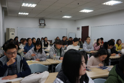 薛银川老师提到演说的九层高台之下的垒土在于“敢演真说”,将“斯坦尼表演体系”铺垫于言语陈述之中,也就是体验生活、真情流露,演说最忌讳僵硬死板地念白。薛老师用自己语调和身形的变化诠释了——“演”是副语言的有力表现,敢“演”才能带动气氛——同学们也在语言的魅力中喜笑颜开,不经之间掌声已连连四起。之后,薛老师用《国家荣誉感》这一篇演讲为同学解释了——“讲”是有声语言的自然流露,真“说”才能入情——让同学明白了文字之中所广衍的声音,句子绝不只是象形文字的集合。最后,薛老师为同学演讲了《父与子的战争》、《认识的人,了解的事》,讲到动情处同学们不禁唏嘘,薛老师在自己的演说中让同学们深刻的明白了演讲技巧会让演讲“锦上添花”。舌畔能到妙处映莲影,衣岚潇洒之中唤莺鸣。