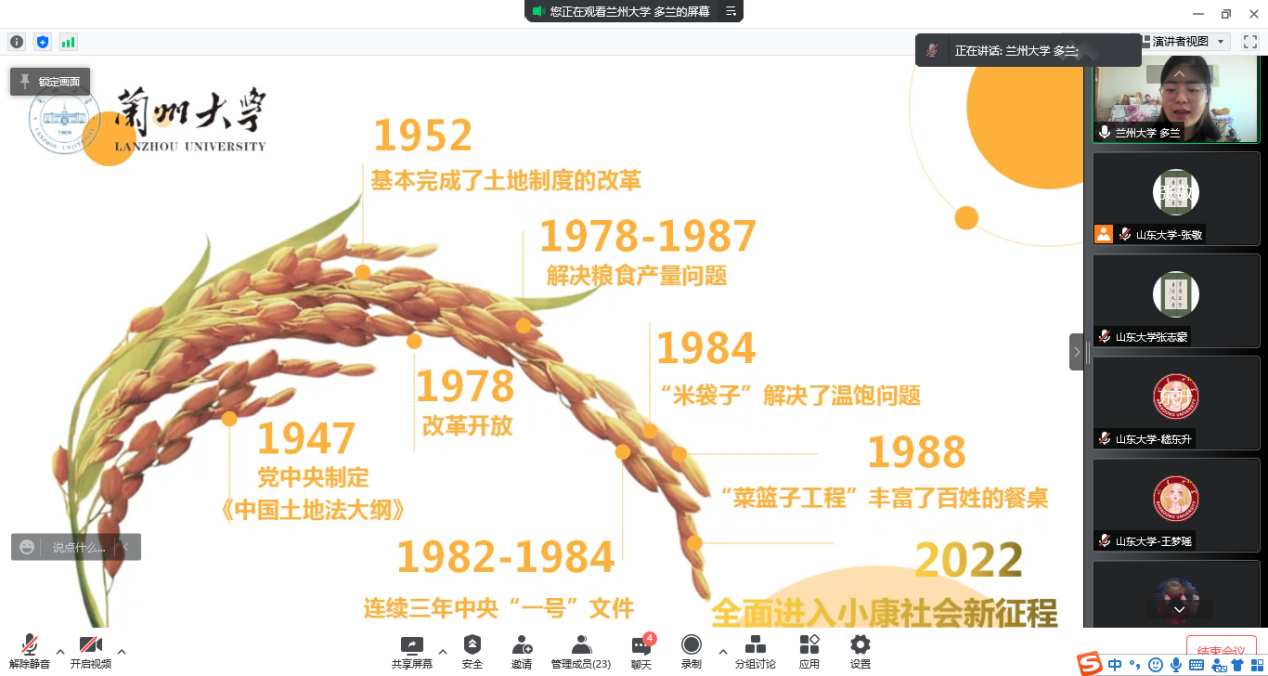 来自williamhill中文的四位同学以清晰的脉络串联起中国蓬勃发展的各个历史阶段,描绘出党百年奋斗历史成就的伟大蓝图。而兰州大学宣讲从文化、农业、教育和青年群体等角度切入,讲述与生活息息相关的党的十九届六中全会。非常感谢williamhill中文为我们搭建学习交流平台,同时也很期待下一次与各位宣讲同仁们的交流学习。