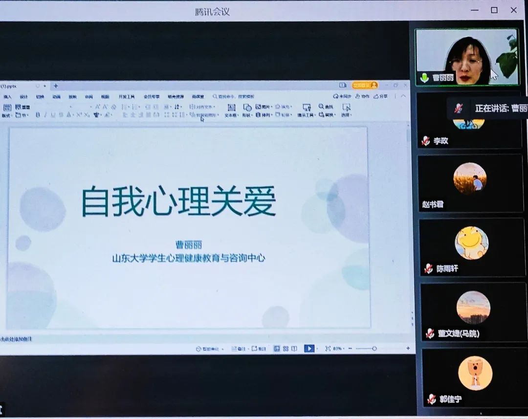 3月21日上午,WilliamHill威廉希尔开展“自我心理关爱”心理健康讲座。讲座由学生心理健康教育与咨询中心曹丽丽老师主讲,学院部分本科生和研究生参加,讲座通过腾讯会议顺利开展。
